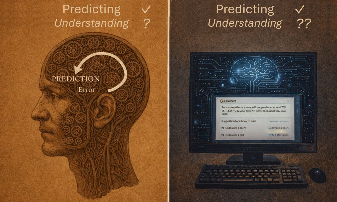 Seen in this light, the claim that AI systems “only” predict plausible continuations begins to look less like a decisive limitation and more like a shared foundation. If understanding consists in having a generative model that supports reliable future-oriented prediction, then the relevant question is not whether AI predicts, but how well it predicts, across what domains, and under what constraints.